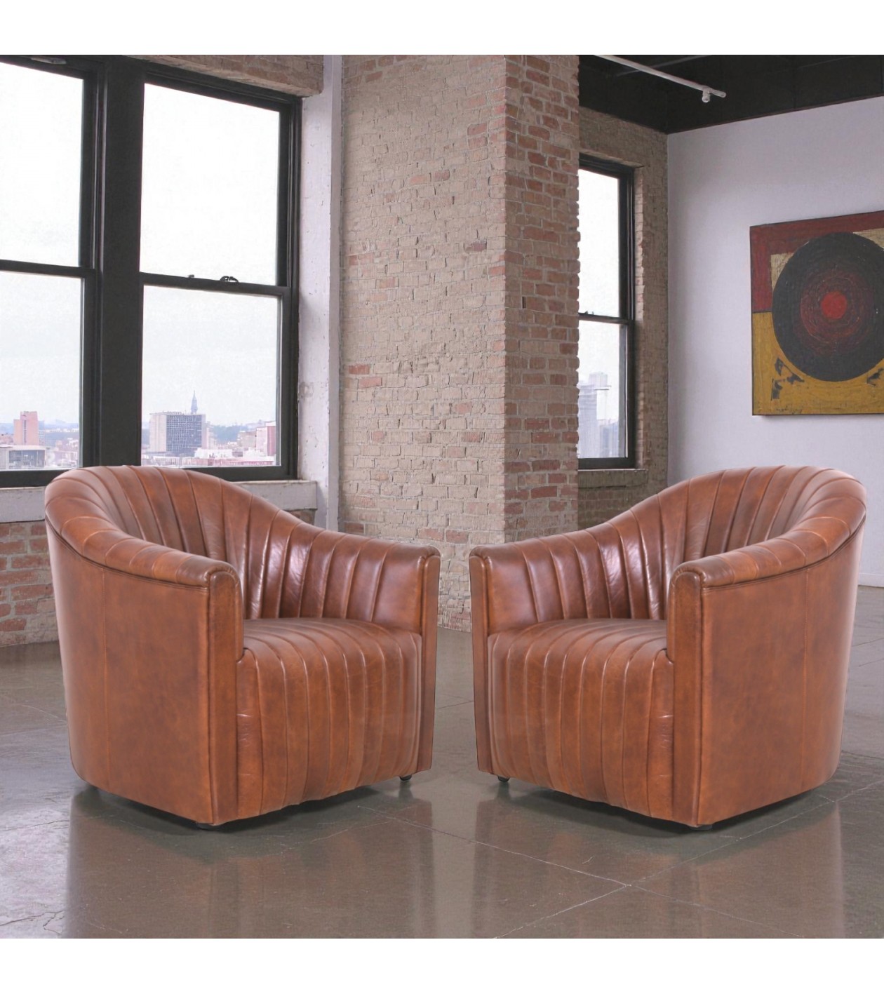 2 x Clubsessel aus patiniertem braunem Leder "Bruce"