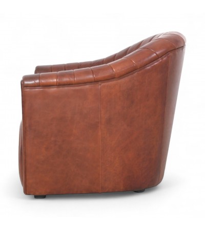 Das sorgfältig ausgewählte Vollnarbenleder ist mit regelmässigen vertikalen Nähten verarbeitet, die die Struktur betonen und einen dynamischen visuellen Effekt erzielen. Die integrierte Rückenlehne und Armlehnen sorgen für bequemes Sitzen und hervorragenden Halt, ideal für Momente der Entspannung. Jeder Sessel verfügt über eine grosszügige Polsterung und eine hochwertige Verarbeitung, die Langlebigkeit und Komfort garantieren.