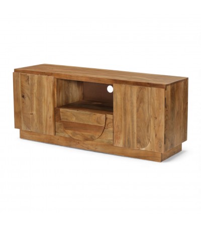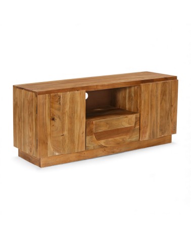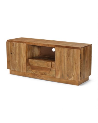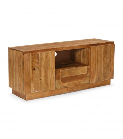 Dieses TV-Möbel aus massivem Akazienholz besticht durch sein authentisches Design und seine ausgewogenen Linien.
