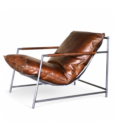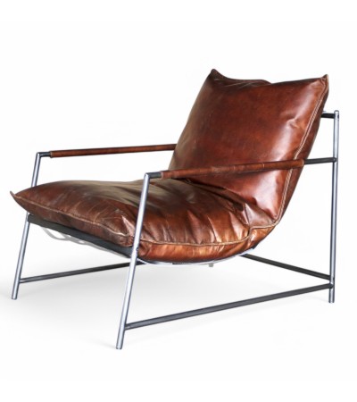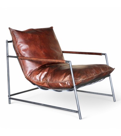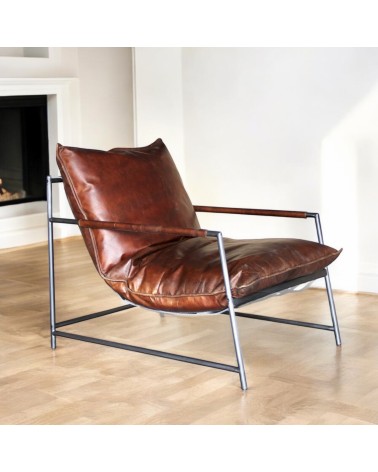Sessel braunes Leder und Metall "Keith"