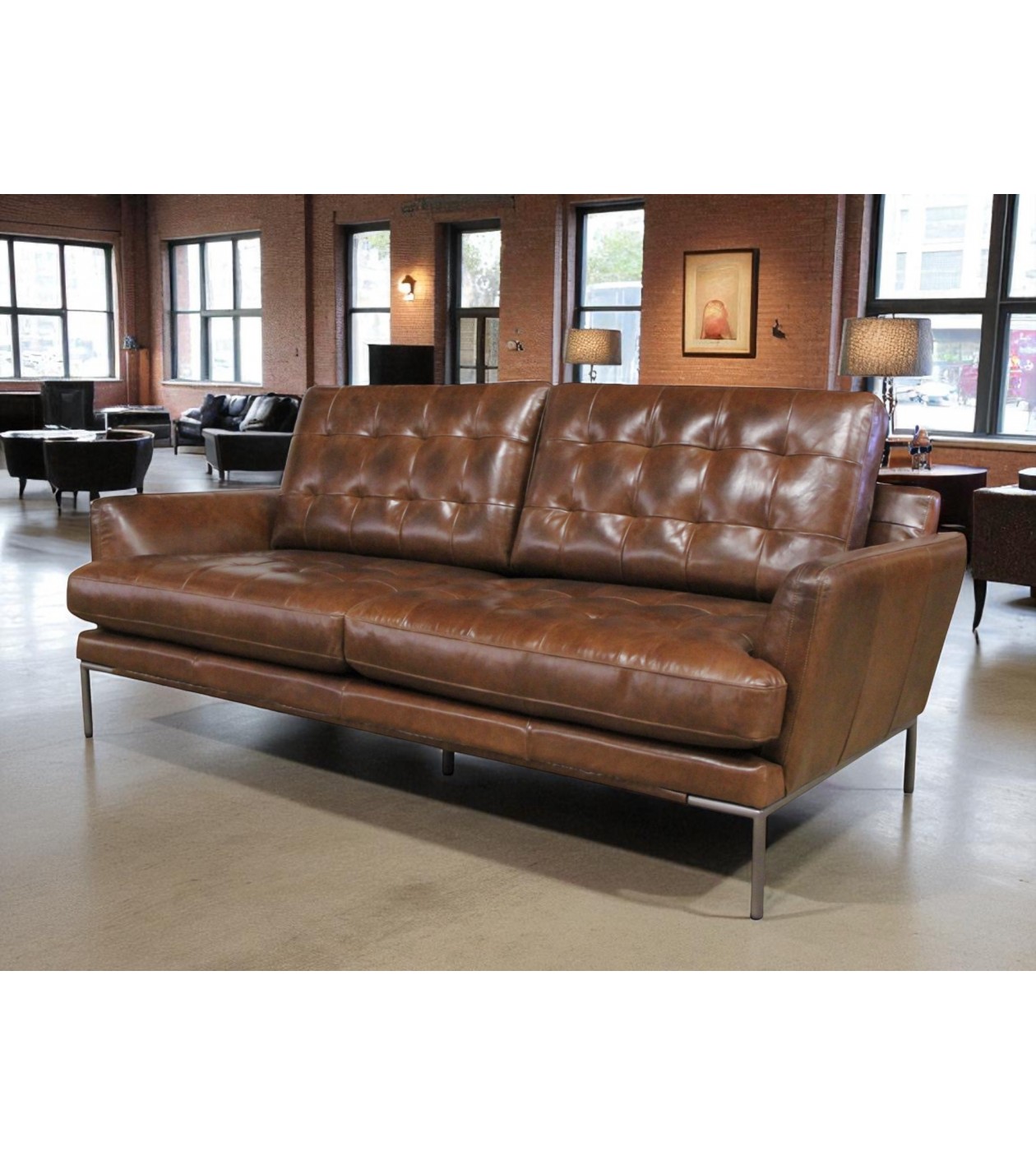 Plongez dans l'élégance rétro avec notre canapé "Marcel" en cuir brun capitonné, inspiré du style des années soixante. Ce canapé incarne le glamour et le charme de cette époque, avec ses lignes épurées et son design intemporel.