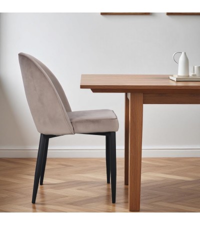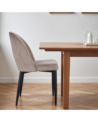 Les chaises "Janie" à l'allure British s’entourent d’un velours de qualité beige pour notre plus grand bonheur ! Leur aspect contemporain et rétro à la fois viendra accompagner une splendide table de repas en bois de Zebrano et résine noire, par exemple.
