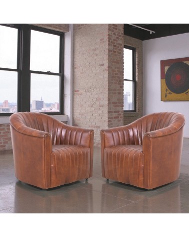 Lot de 2 fauteuils club cuir vintage brun - modèle Bruce